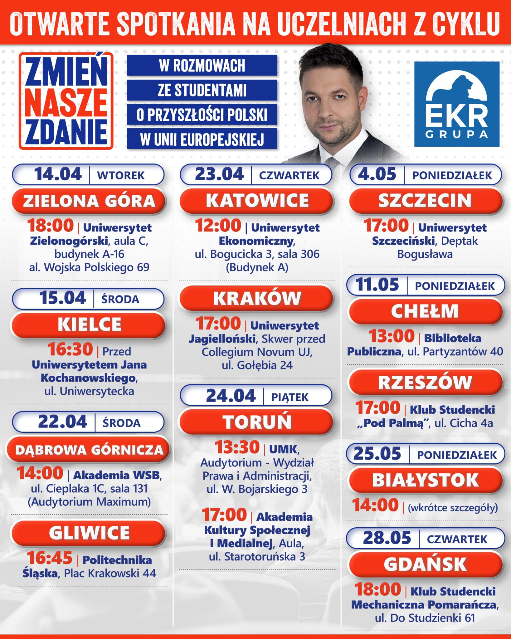 Zapraszamy do współtworzenia przestrzeni, w której spotykają się różne poglądy, doświadczenia i wizje przyszłości. Chcemy rozmawiać z młodymi ludźmi o kierunku, w jakim zmierza nasz kraj, o jego ustrojowej przyszłości oraz o wyzwaniach, jakie stoją przed Polską w kontekście trwającej debaty o zmianach traktatów europejskich.